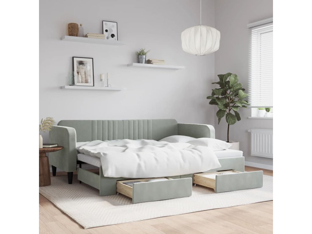 Válenda s přistýlkou a zásuvkami světle šedá 80 x 200 cm samet 3197104