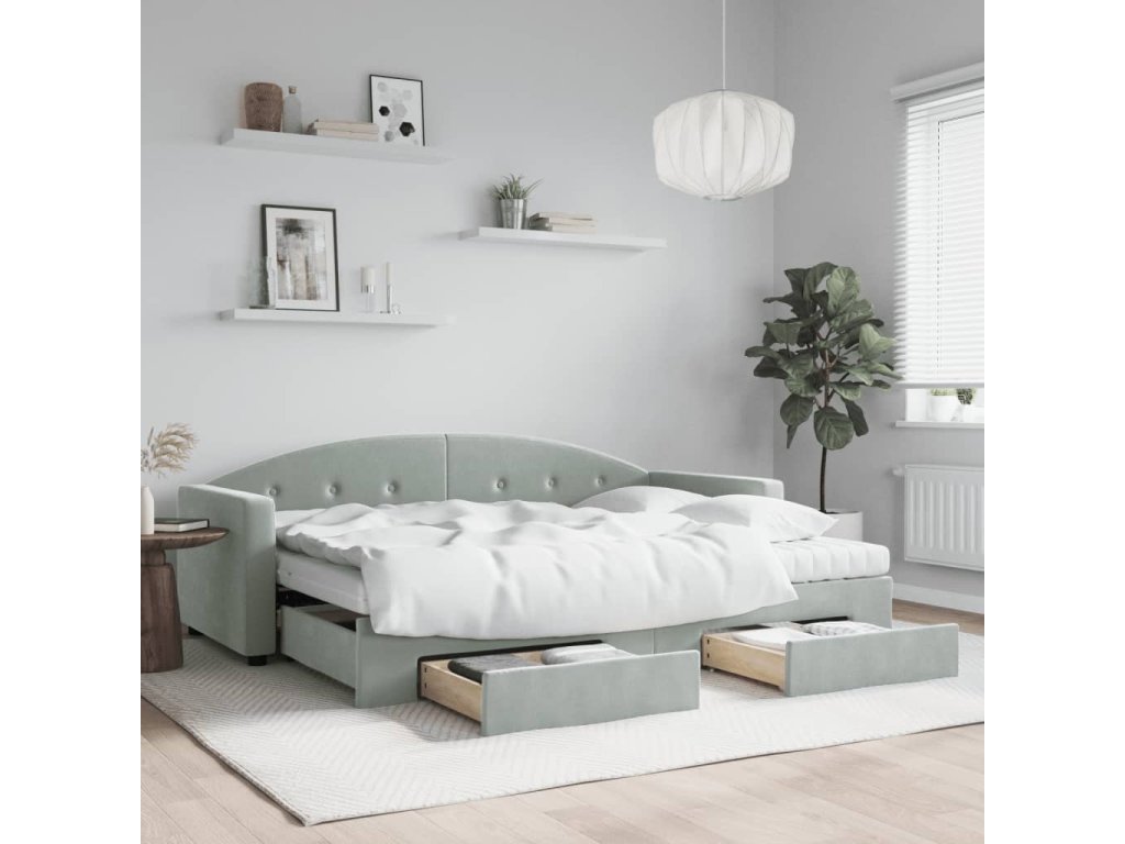Válenda s přistýlkou a zásuvkami světle šedá 80 x 200 cm samet 3197366