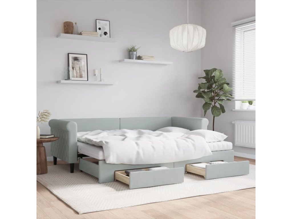 Válenda s přistýlkou a zásuvkami světle šedá 80 x 200 cm samet 3197836