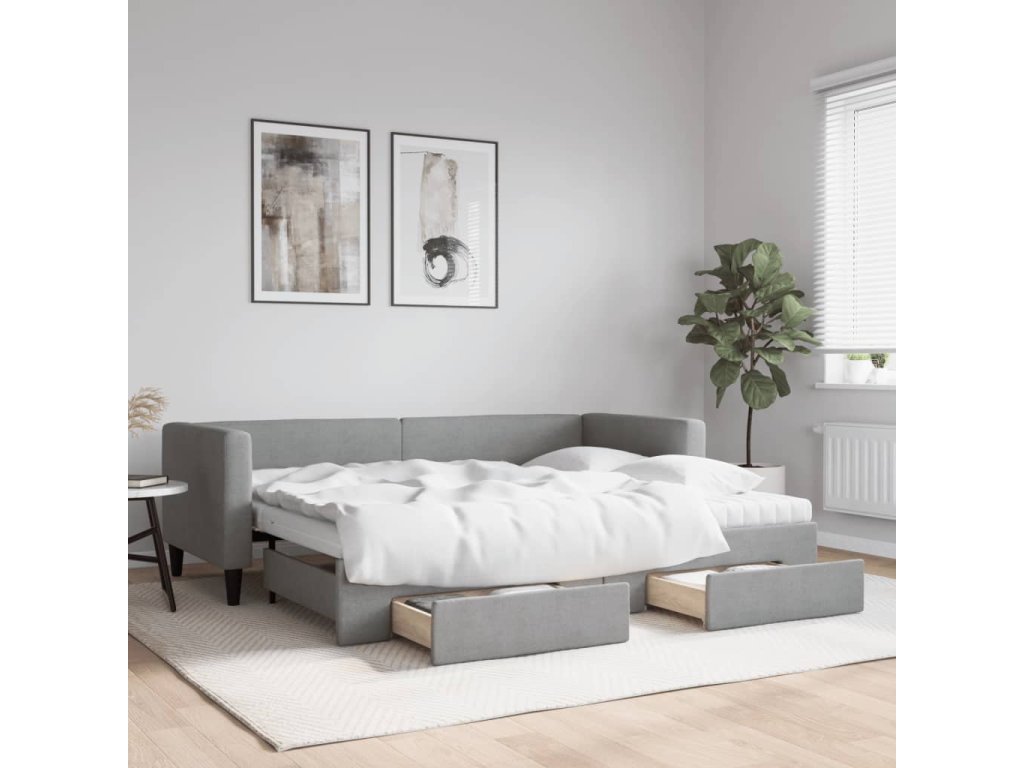 Válenda s přistýlkou a zásuvkami světle šedá 80 x 200 cm textil 3196627