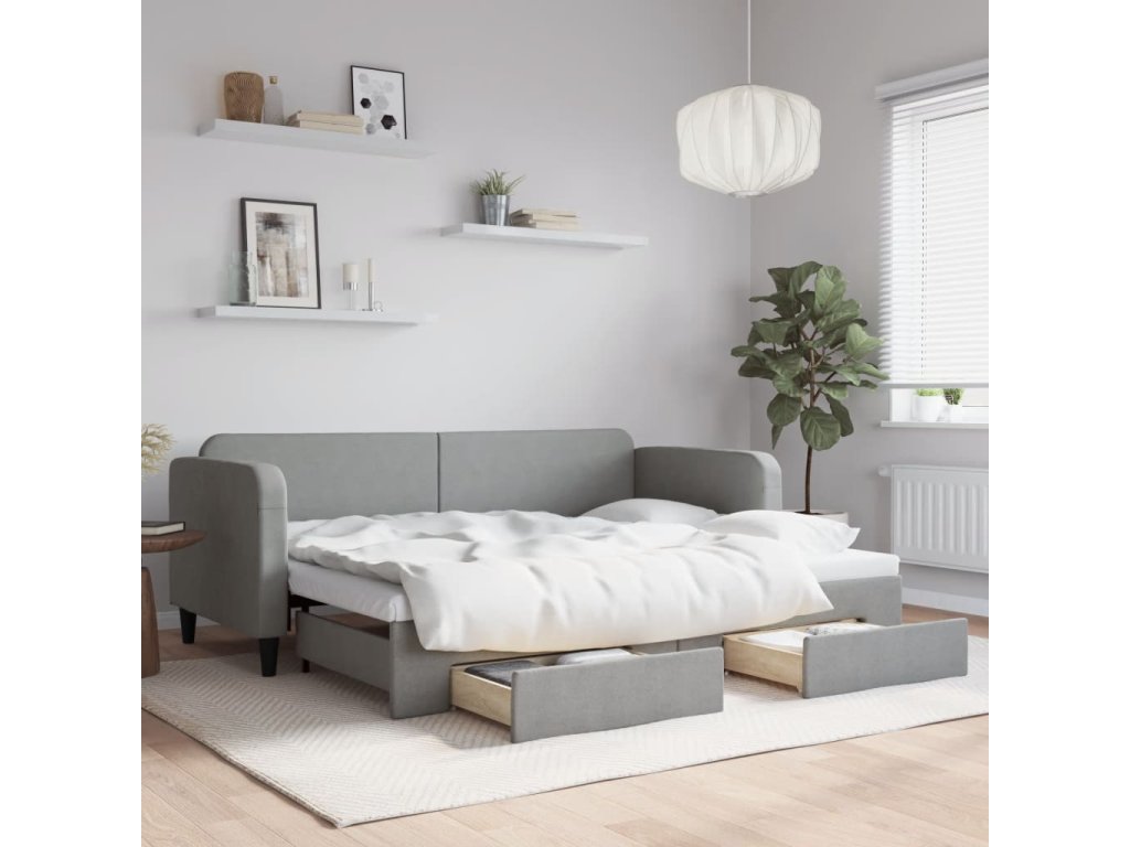 Válenda s přistýlkou a zásuvkami světle šedá 80 x 200 cm textil 3196847