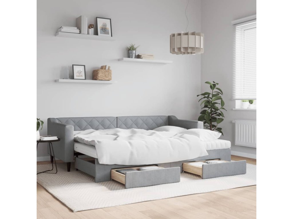Válenda s přistýlkou a zásuvkami světle šedá 80 x 200 cm textil 3197475