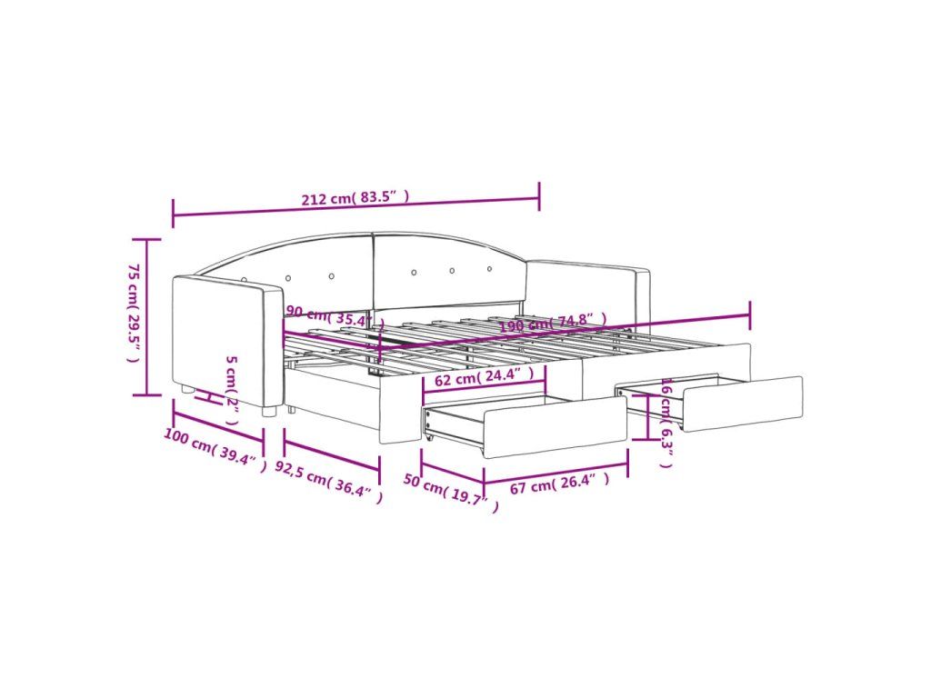 - Rozměry (nevysunuté): 212 x 100 x 75 cm (D x Š x V)