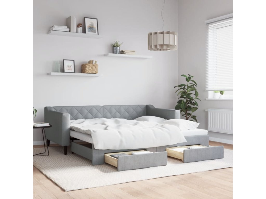 Válenda s přistýlkou a zásuvkami světle šedá 90 x 190 cm textil 3197472