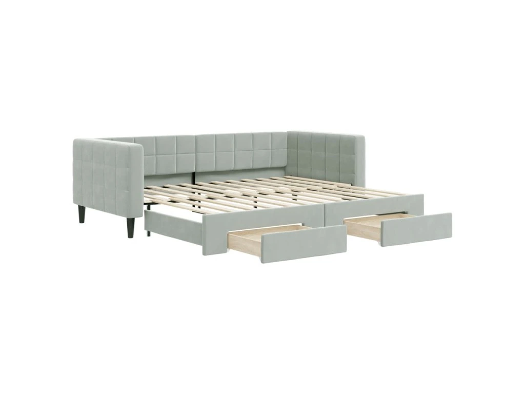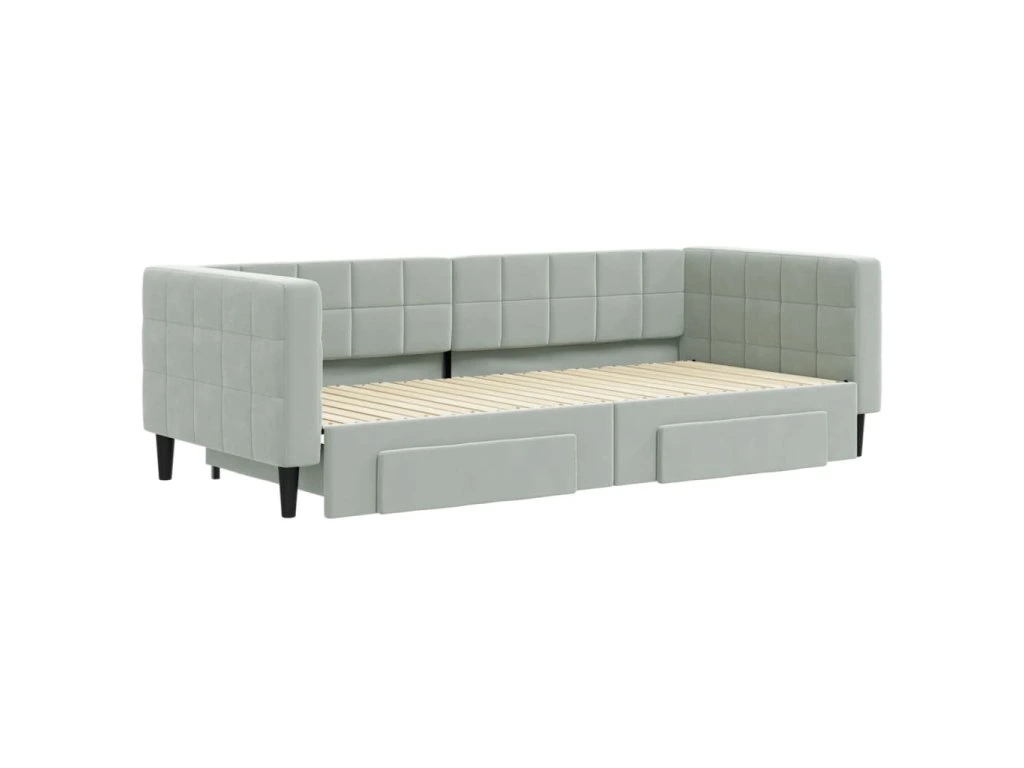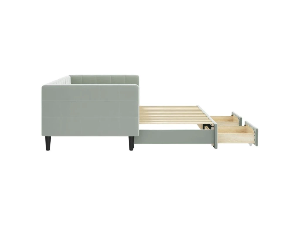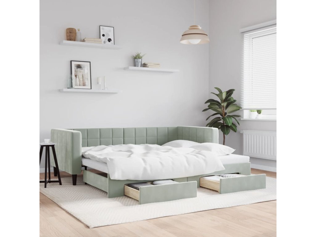 Válenda s přistýlkou a zásuvkami světle šedá 90 x 200 cm samet 3196739