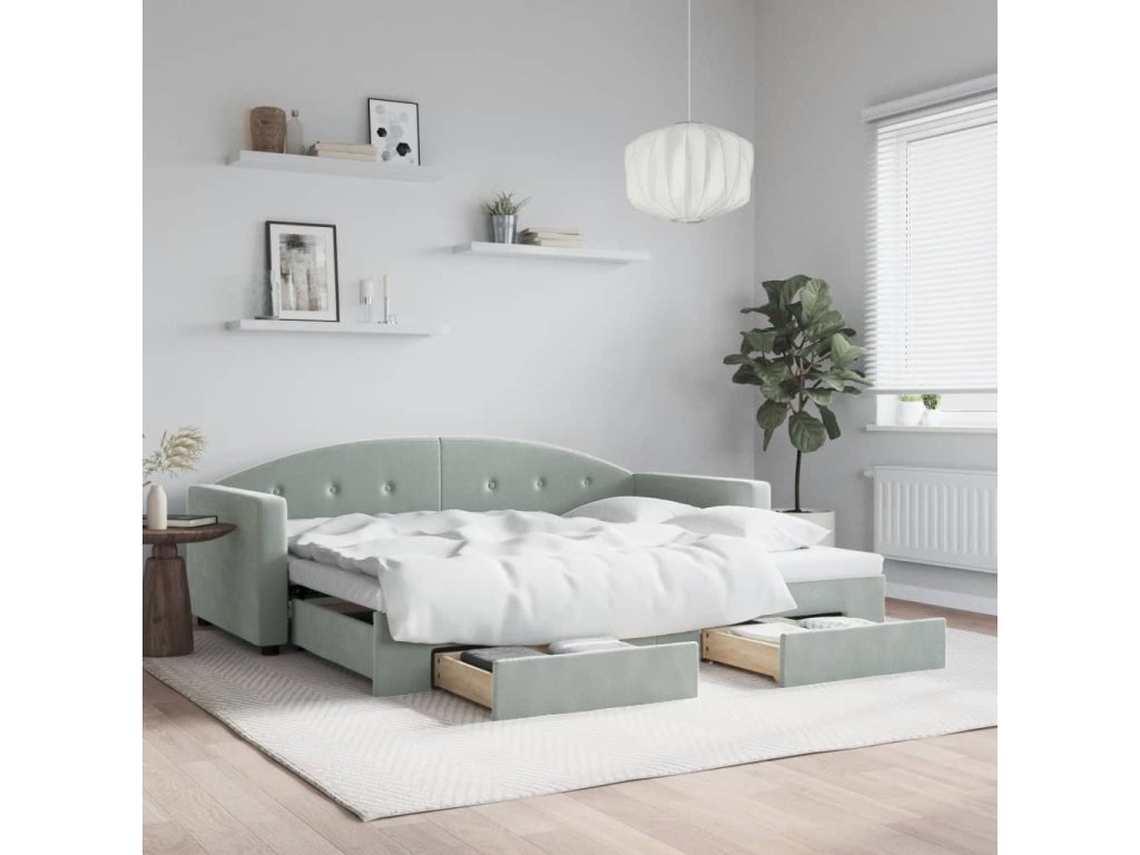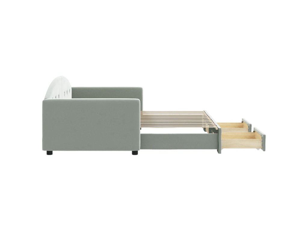 Válenda s přistýlkou a zásuvkami světle šedá 90 x 200 cm samet 3197349