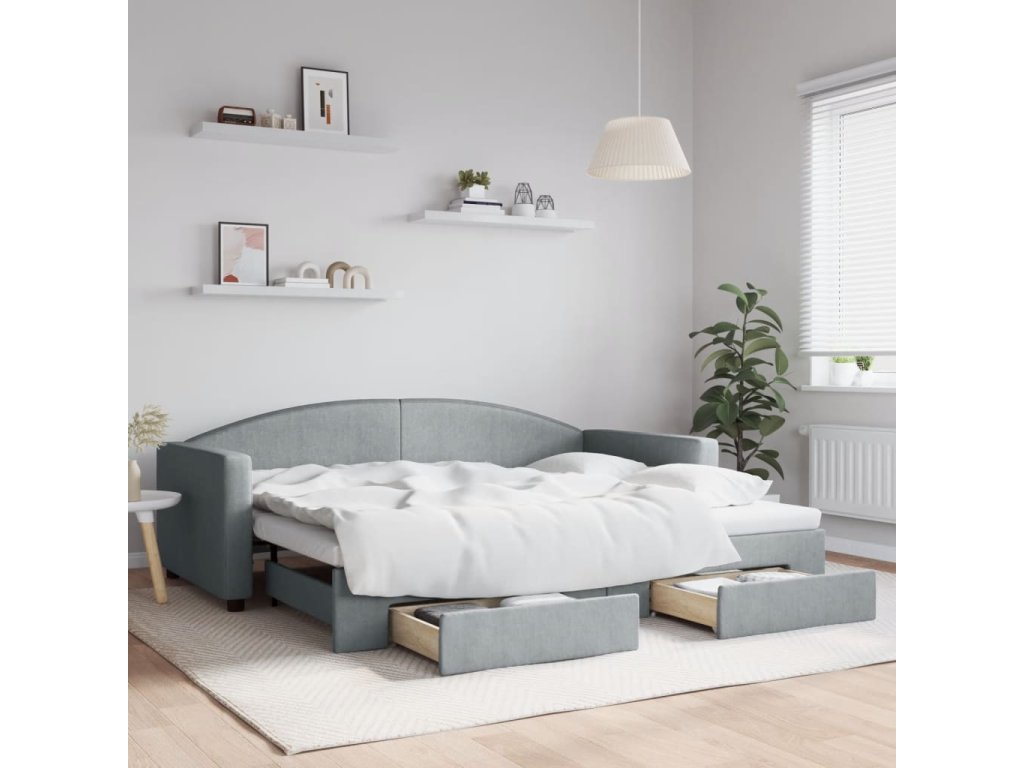 Válenda s přistýlkou a zásuvkami světle šedá 90 x 200 cm textil 3197224