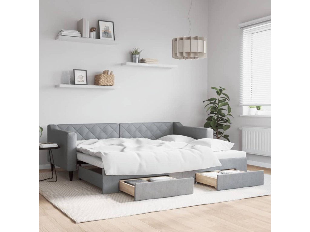 Válenda s přistýlkou a zásuvkami světle šedá 90 x 200 cm textil 3197462