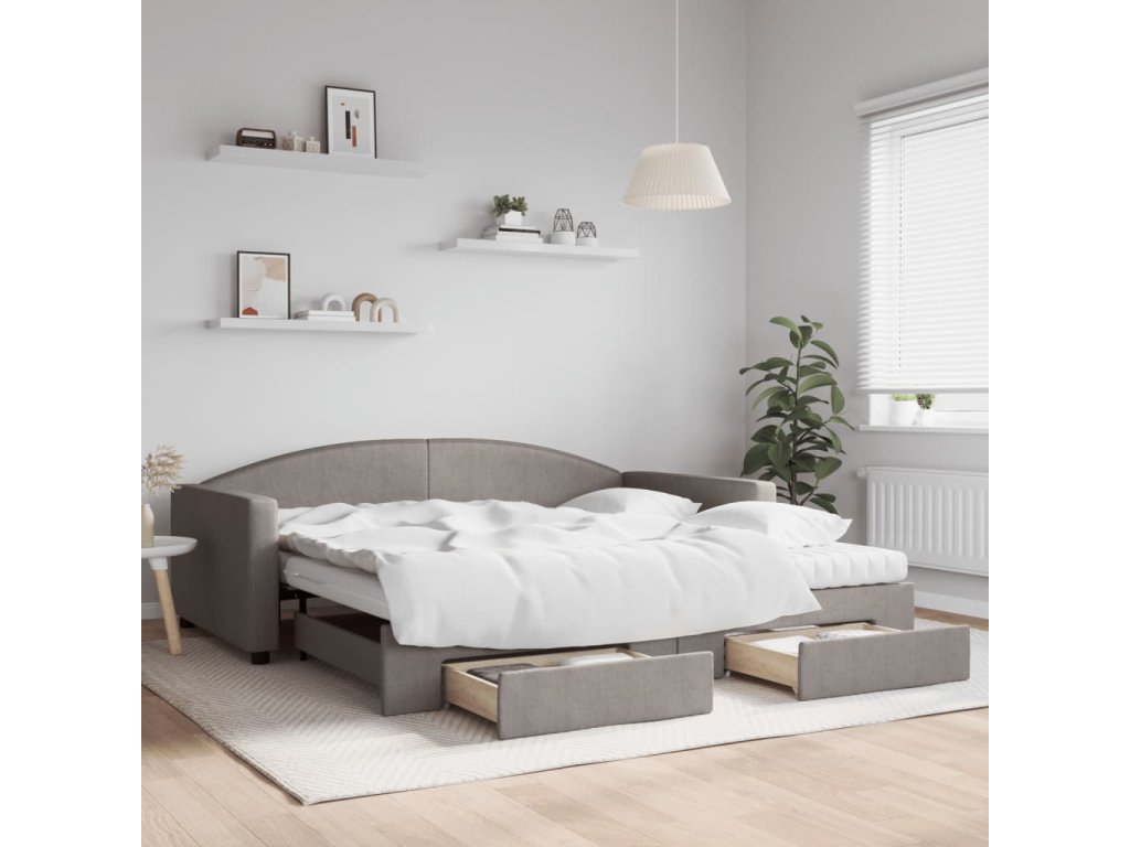 Válenda s přistýlkou a zásuvkami taupe 100 x 200 cm textil 3197250