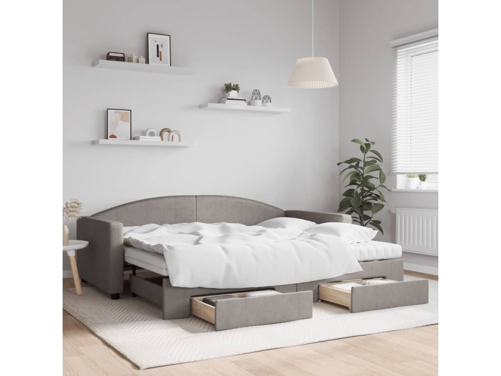 Válenda s přistýlkou a zásuvkami taupe 90 x 200 cm textil 3197245
