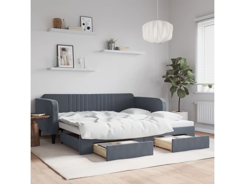 Válenda s přistýlkou a zásuvkami tmavě šedá 100 x 200 cm samet 3197119