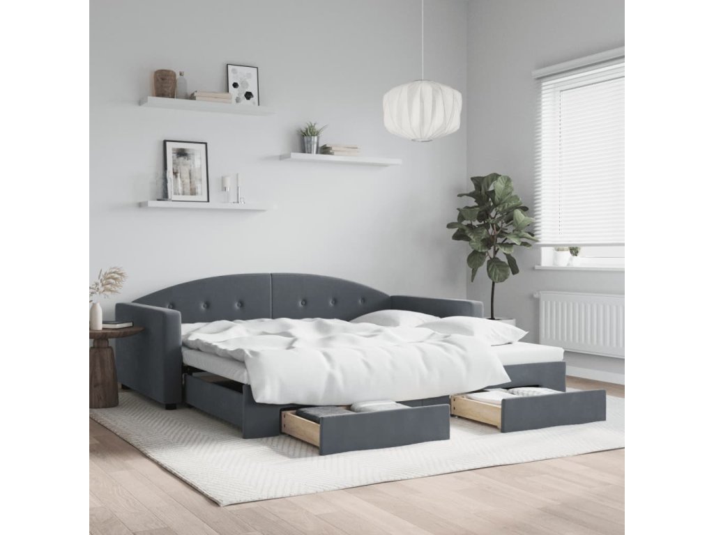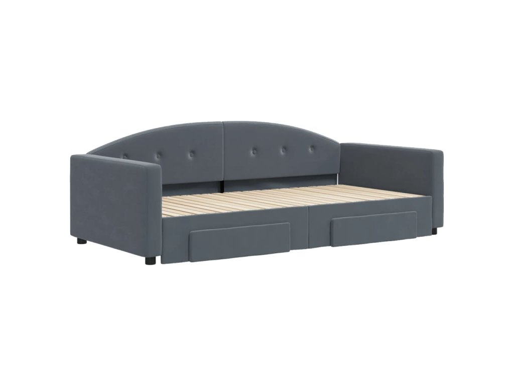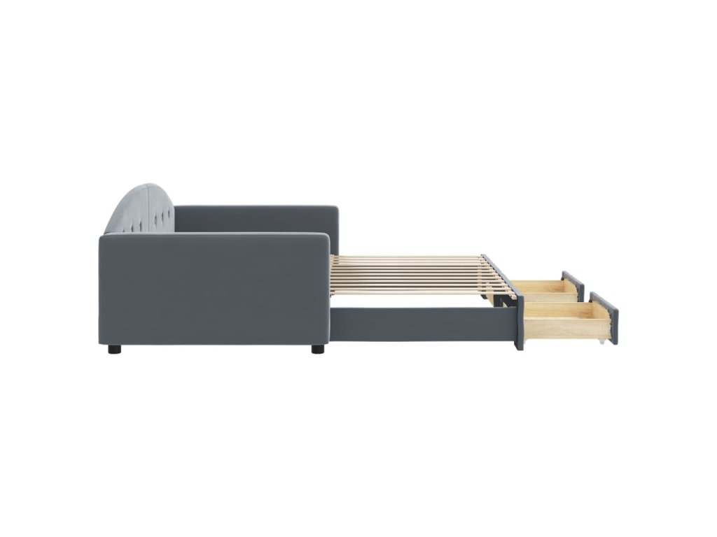 Válenda s přistýlkou a zásuvkami tmavě šedá 100 x 200 cm samet 3197357