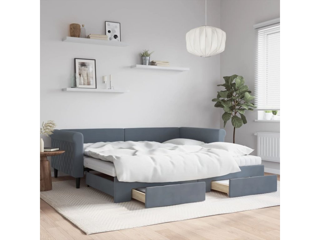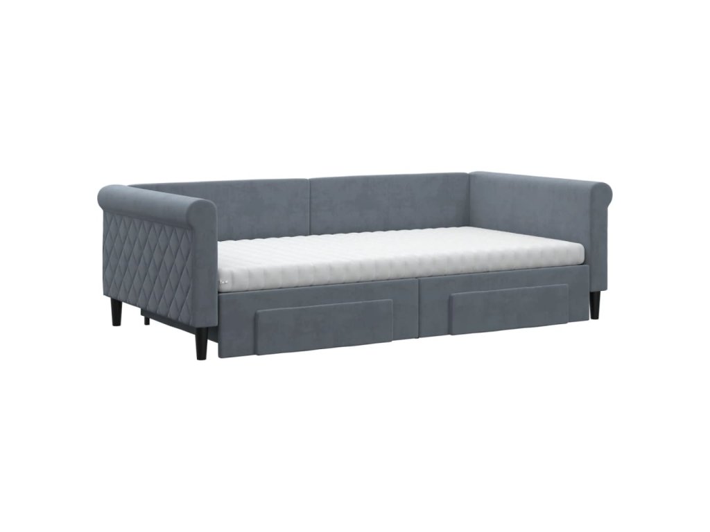 Válenda s přistýlkou a zásuvkami tmavě šedá 100 x 200 cm samet 3197851