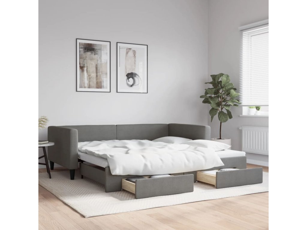 Válenda s přistýlkou a zásuvkami tmavě šedá 100 x 200 cm textil 3196620