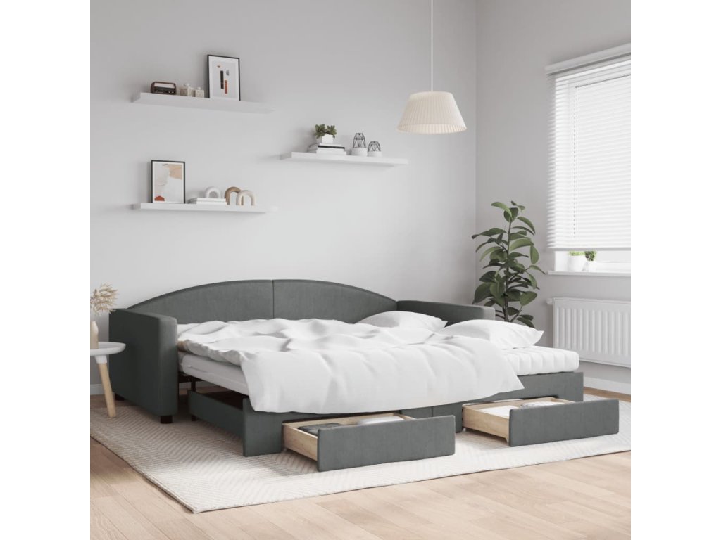 Válenda s přistýlkou a zásuvkami tmavě šedá 100 x 200 cm textil 3197248