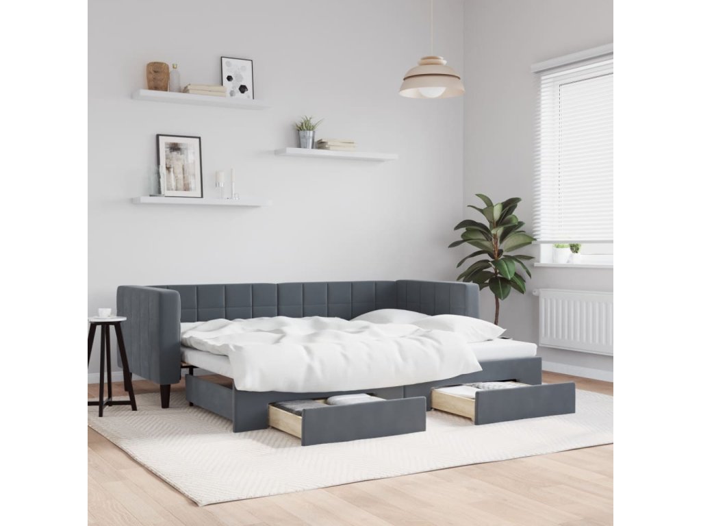 Válenda s přistýlkou a zásuvkami tmavě šedá 80 x 200 cm samet 3196733