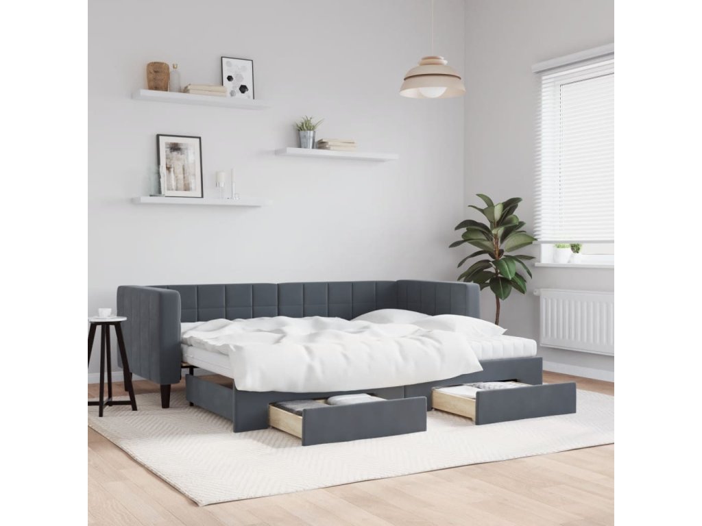 Válenda s přistýlkou a zásuvkami tmavě šedá 80 x 200 cm samet 3196757