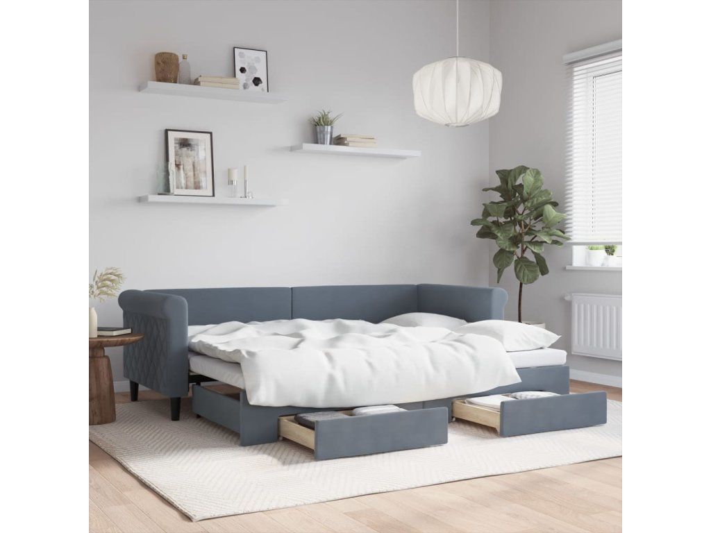 Válenda s přistýlkou a zásuvkami tmavě šedá 80 x 200 cm samet 3197813