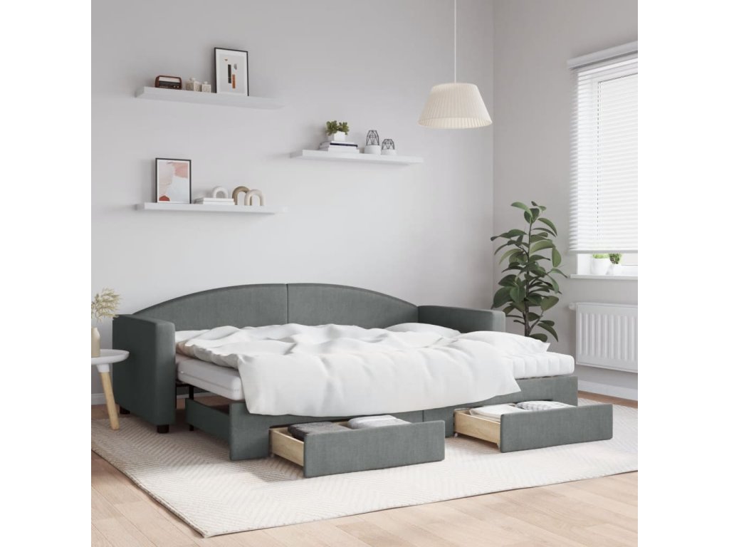 Válenda s přistýlkou a zásuvkami tmavě šedá 80 x 200 cm textil 3197238