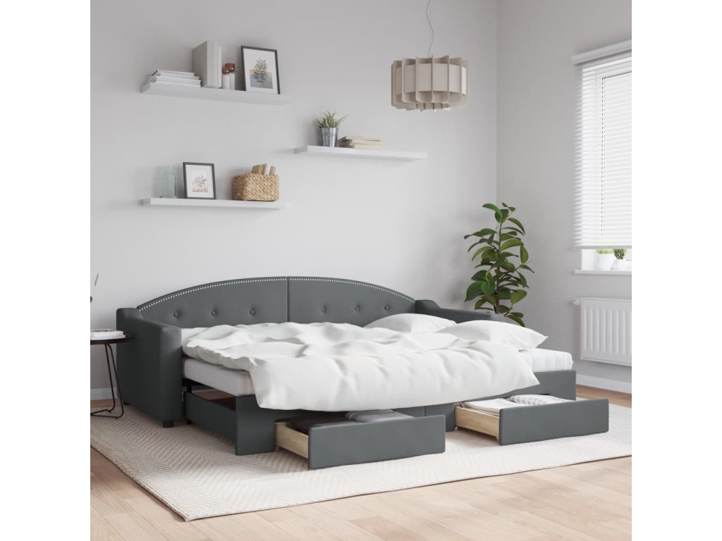 Válenda s přistýlkou a zásuvkami tmavě šedá 80 x 200 cm textil 3197580