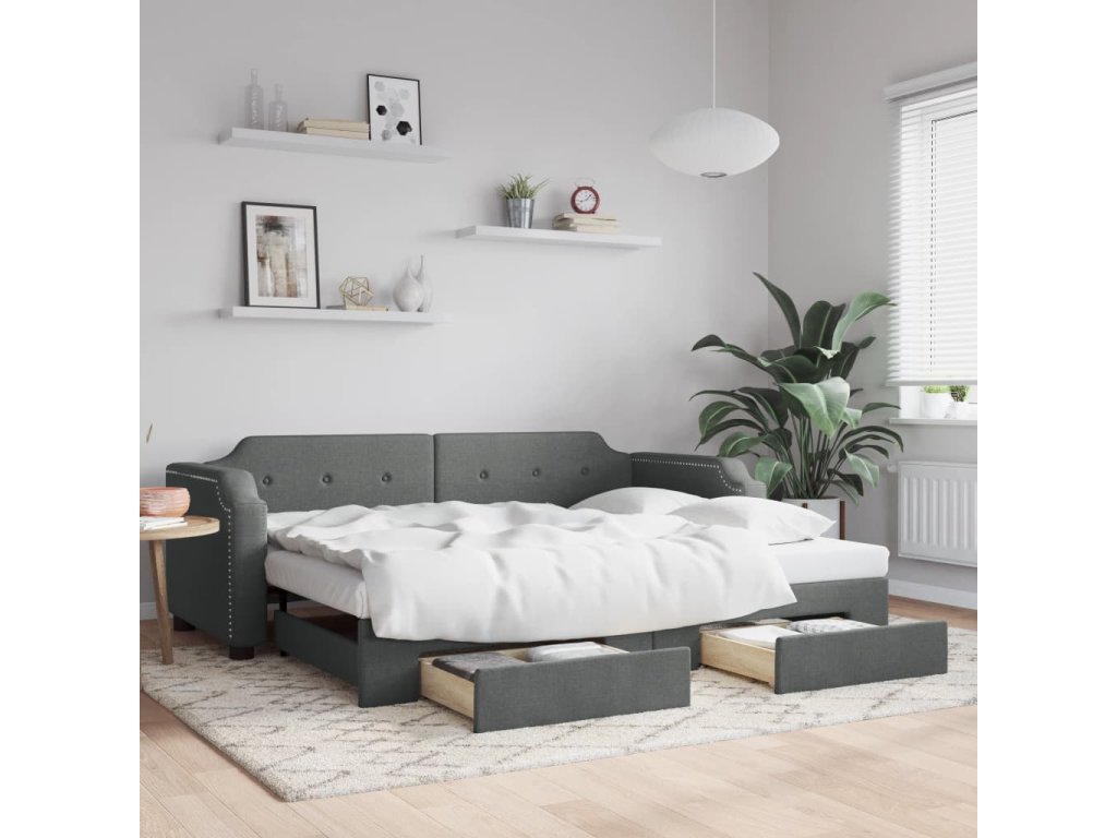 Válenda s přistýlkou a zásuvkami tmavě šedá 80 x 200 cm textil 3197666