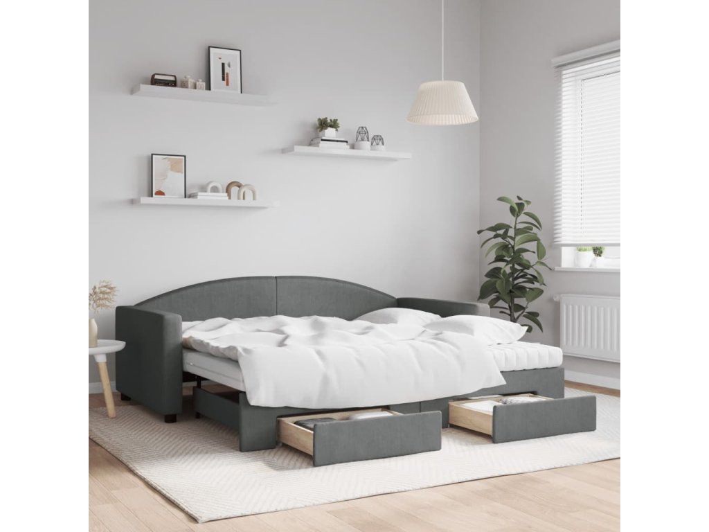 Válenda s přistýlkou a zásuvkami tmavě šedá 90 x 190 cm textil 3197253