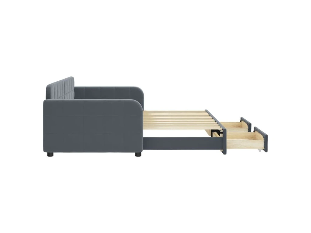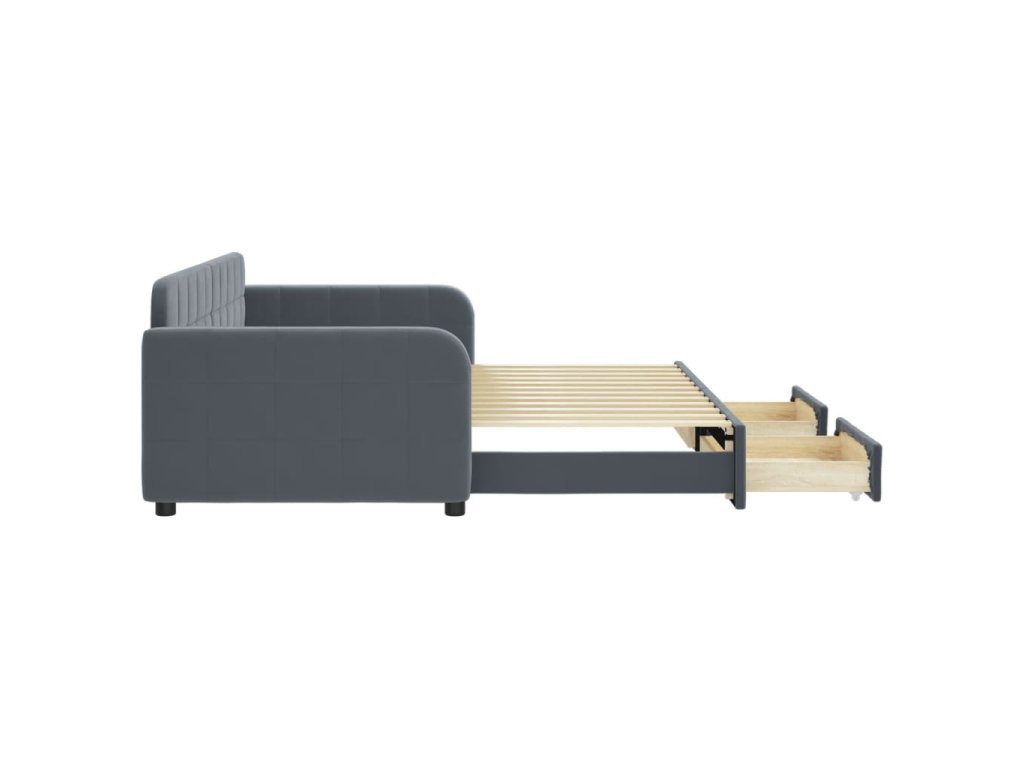 Válenda s přistýlkou a zásuvkami tmavě šedá 90 x 200 cm samet 3196978