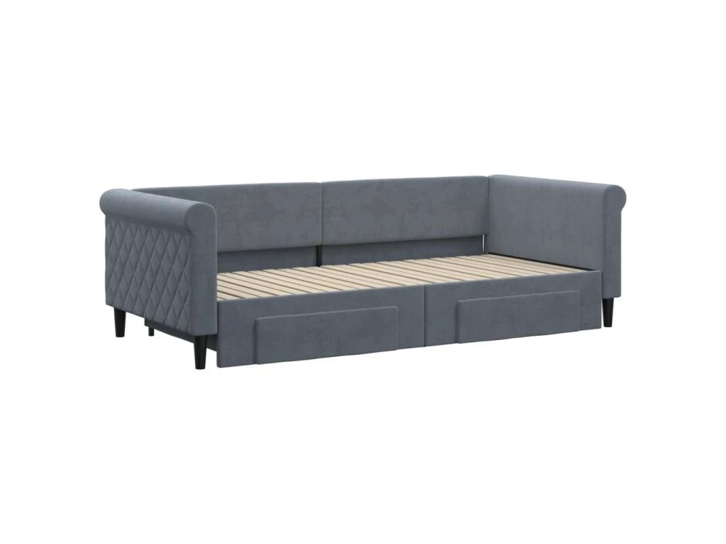 Válenda s přistýlkou a zásuvkami tmavě šedá 90 x 200 cm samet 3197820