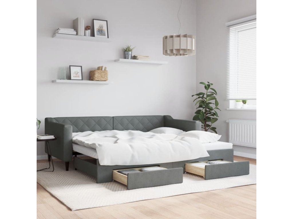 Válenda s přistýlkou a zásuvkami tmavě šedá 90 x 200 cm textil 3197463