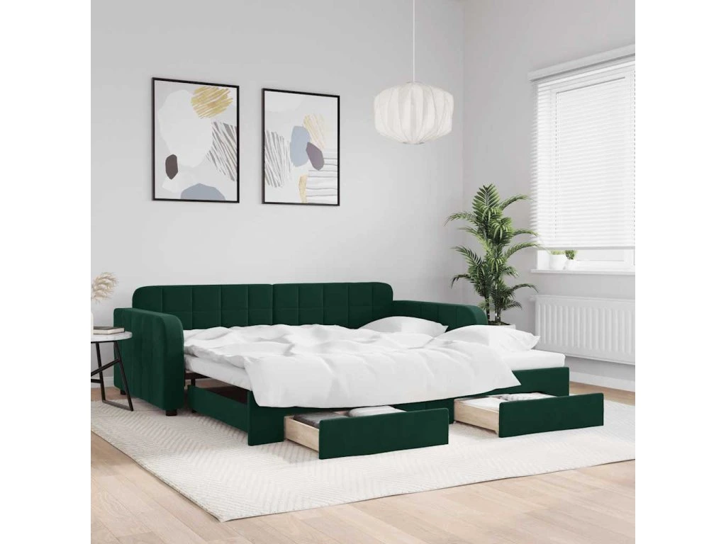 Válenda s přistýlkou a zásuvkami tmavě zelená 100x200 cm samet 3196986