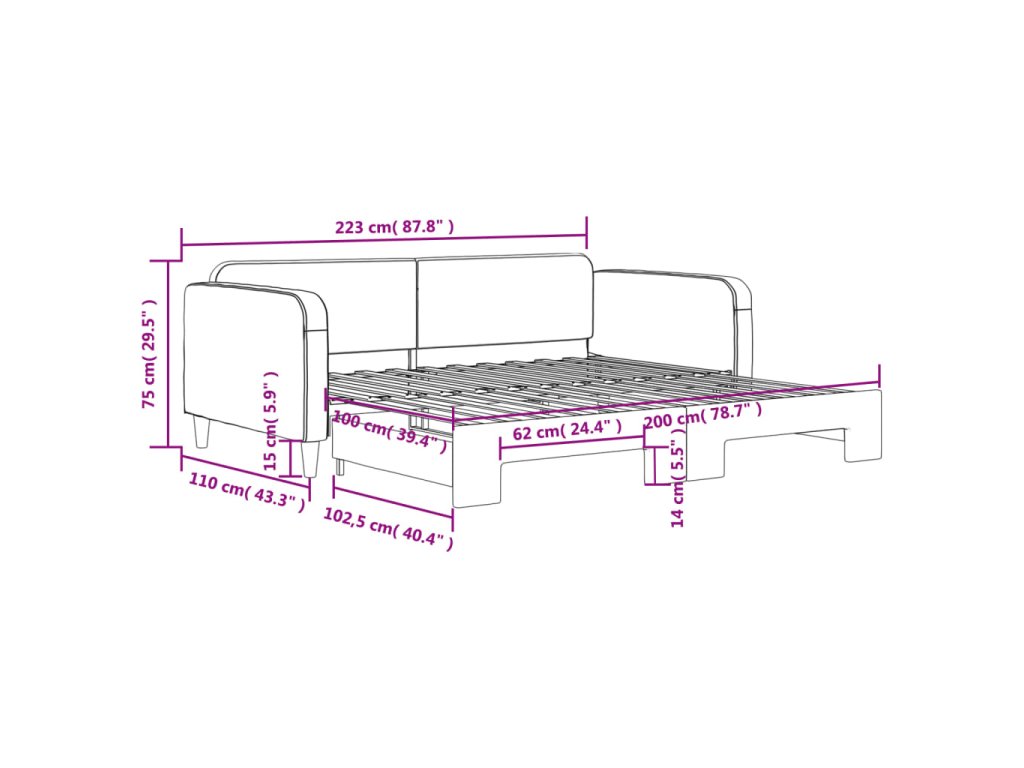 - Rozměry (nevysunuté): 223 x 110 x 75 cm (D x Š x V)