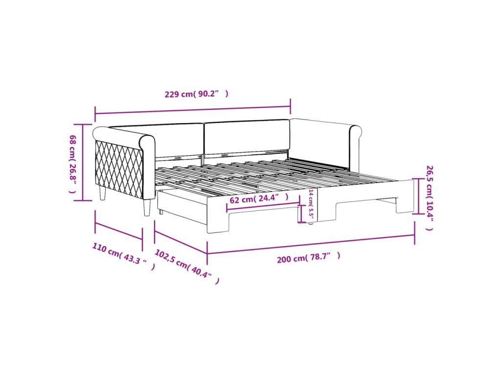 - Rozměry (nevysunuté): 229 x 110 x 68 cm (D x Š x V)