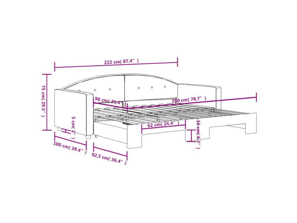 - Rozměry (nevysunuté): 222 x 100 x 75 cm (D x Š x V)