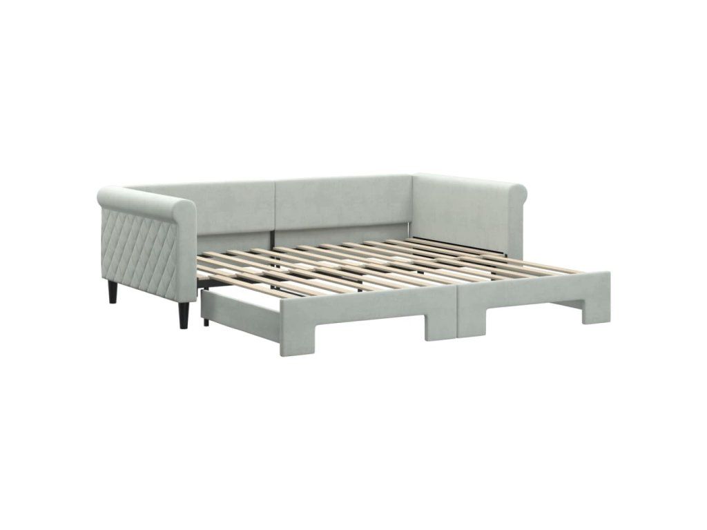 - Měkký samet a pevná konstrukce: Tato válenda má robustní rám zhotovený ze dřeva a kovu a je čalouněná měkkým a pohodlným sametem.