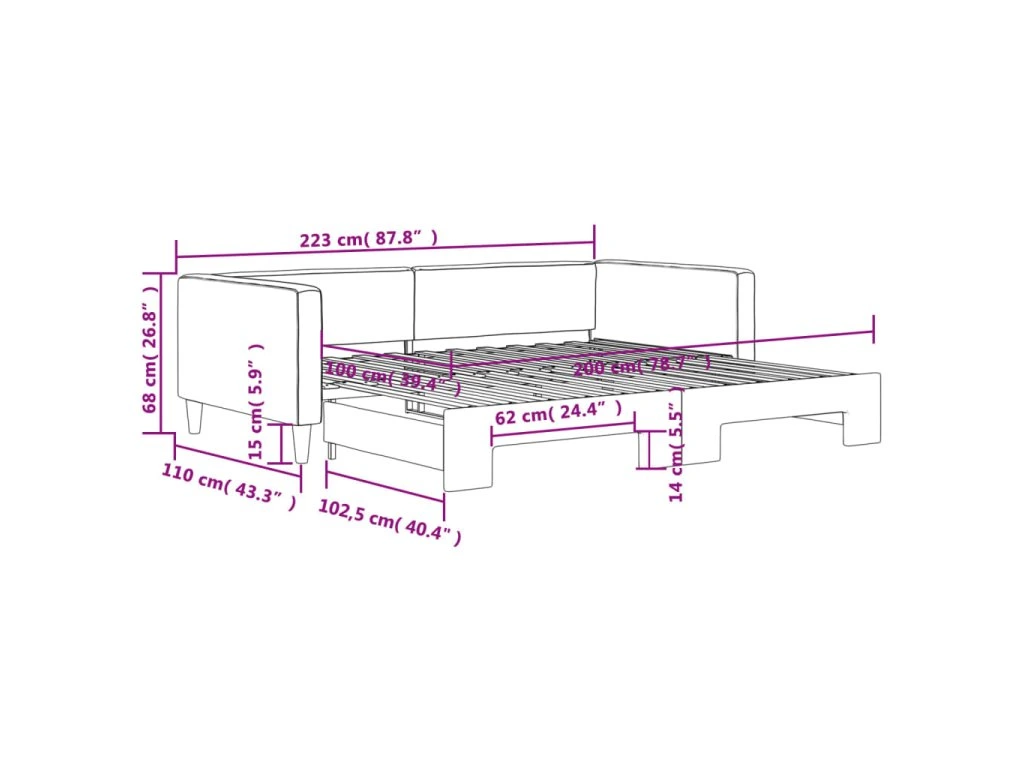 - Všestranná válenda: Rozkládací pohovku lze během dne používat jako pohovku a v noci ji přeměníte na dvoulůžko pomocí přistýlky, kterou snadno vysunete, takže představuje pohodlné řešení pro uložení vašich hostů a zároveň maximálně využívá prostor.