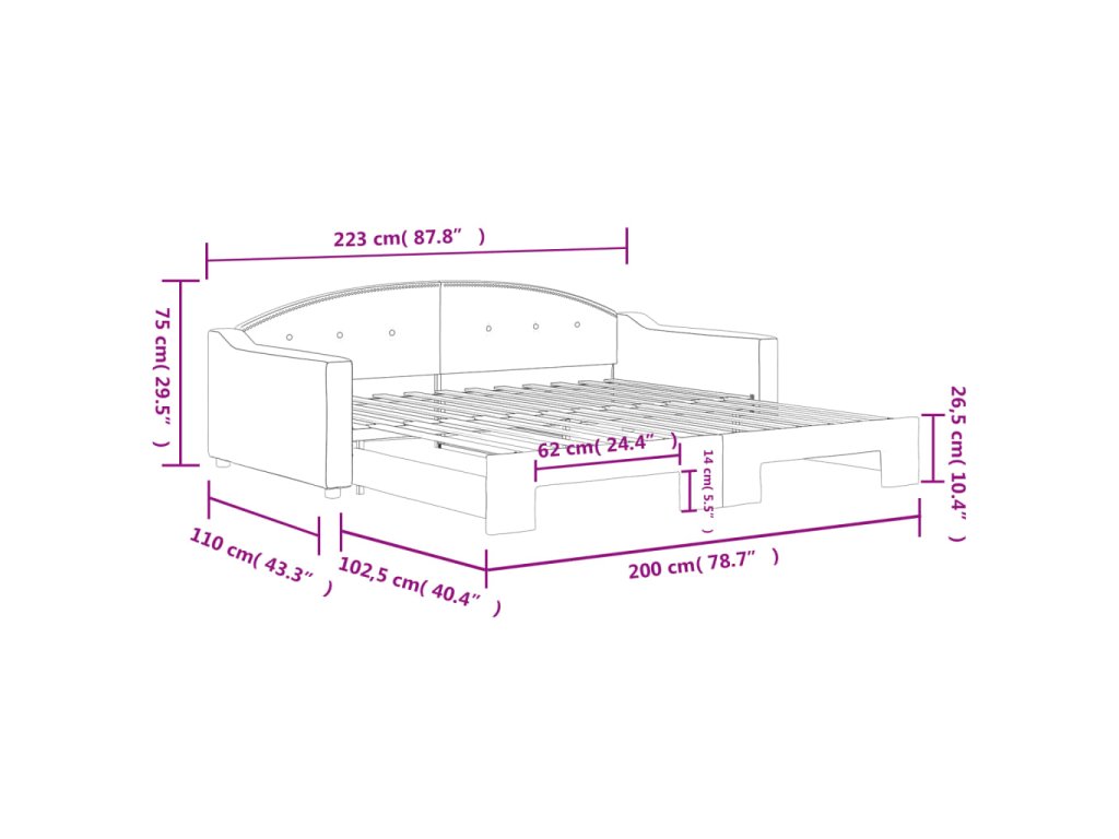 - Rozměry (nevysunuté): 223 x 110 x 75 cm (D x Š x V)