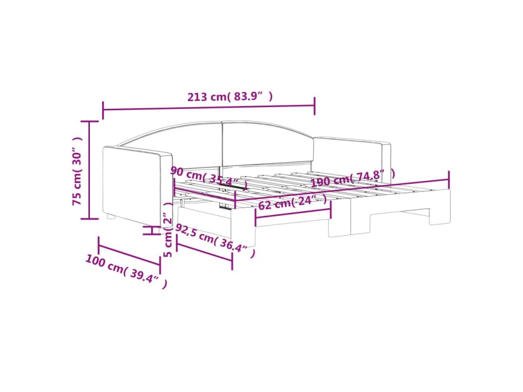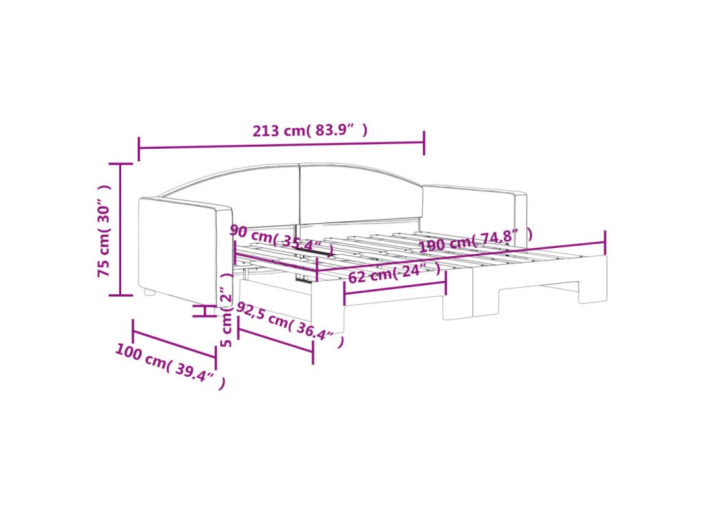 - Rozměry (nevysunuté): 213 x 100 x 75 cm (Š x H x V)