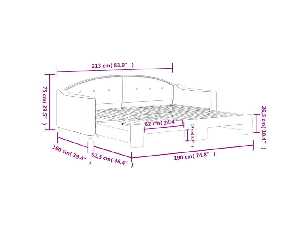 - Rozměry (nevysunuté): 213 x 100 x 75 cm (D x Š x V)
