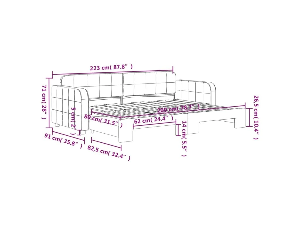 - Rozměry (nevysunuté): 223 x 91 x 71 cm (D x Š x V)