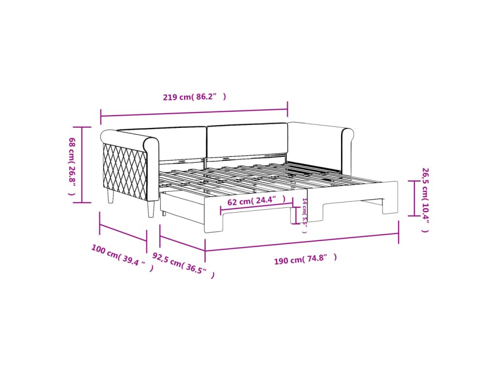 - Rozměry (nevysunuté): 219 x 100 x 68 cm (D x Š x V)