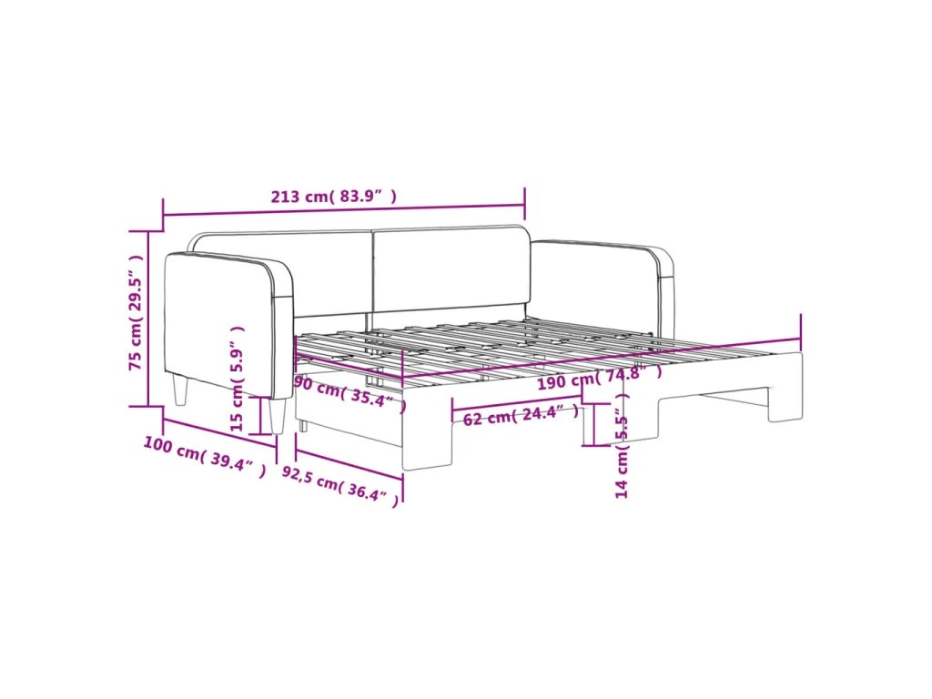 Tato denní postel 2 v 1 s výsuvnou postelí, která slouží jako pohovka i postel, je praktickým a poutavým doplňkem vašeho obývacího pokoje nebo ložnice.