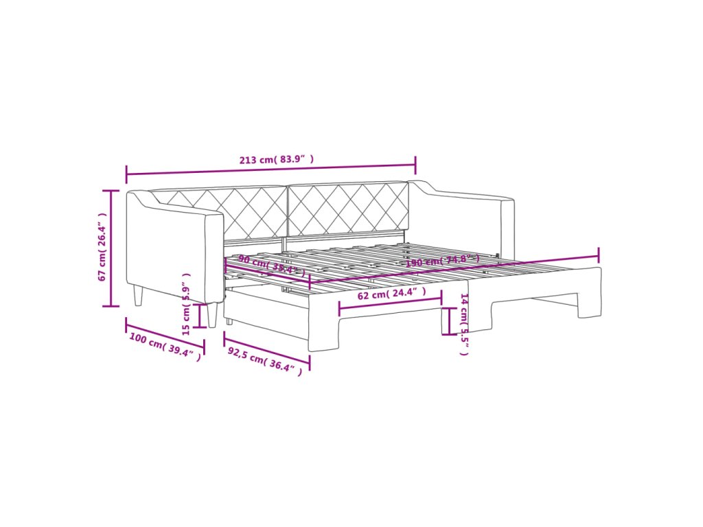 - Rozměry (nevysunuté): 213 x 100 x 67 cm (D x Š x V)