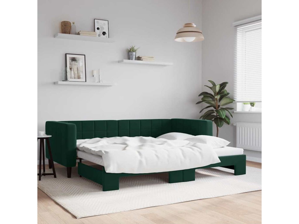 Válenda s přistýlkou tmavě zelená 90 x 200 cm samet 3196693