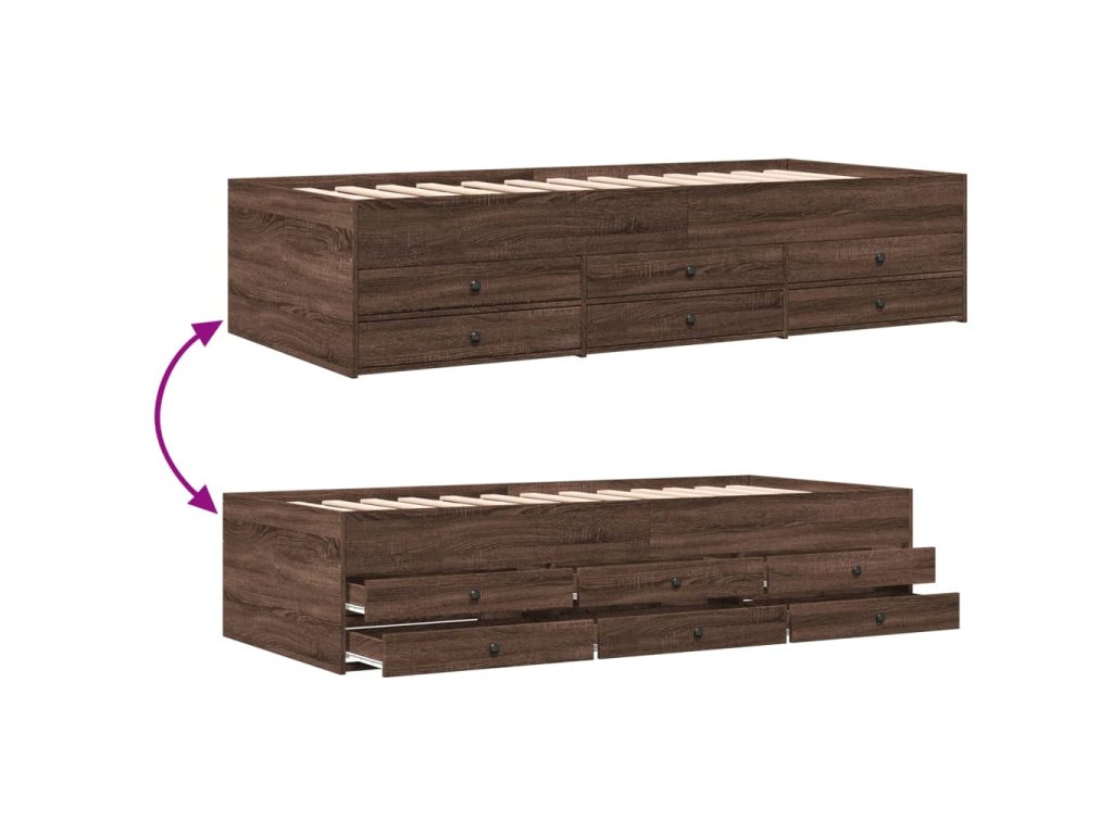 Válenda se zásuvkami bez matrace hnědý dub 75 x 190 cm 3280894