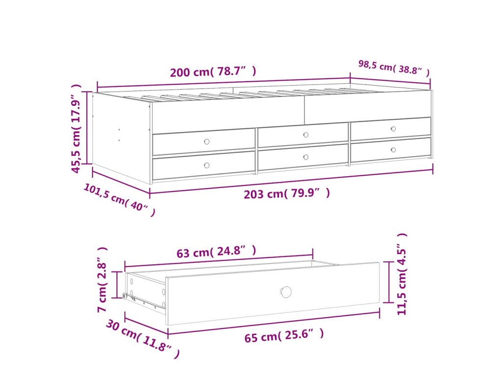 Válenda se zásuvkami bez matrace šedá sonoma 100 x 200 cm 3280872