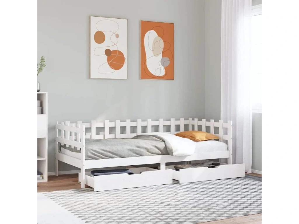 Válenda se zásuvkami bílá 90 x 200 cm masivní borovice 3302135