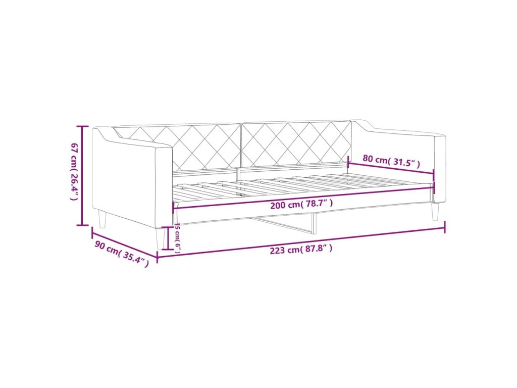 - Rozměry sedáku: 80 x 200 cm (Š x D)