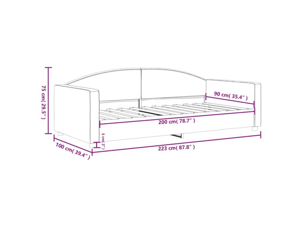 - Rozměry sedáku: 90 x 200 cm (Š x D)
