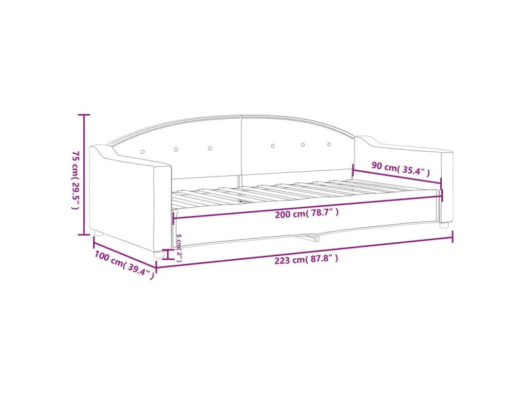 - Rozměry sedáku: 90 x 200 cm (Š x D)