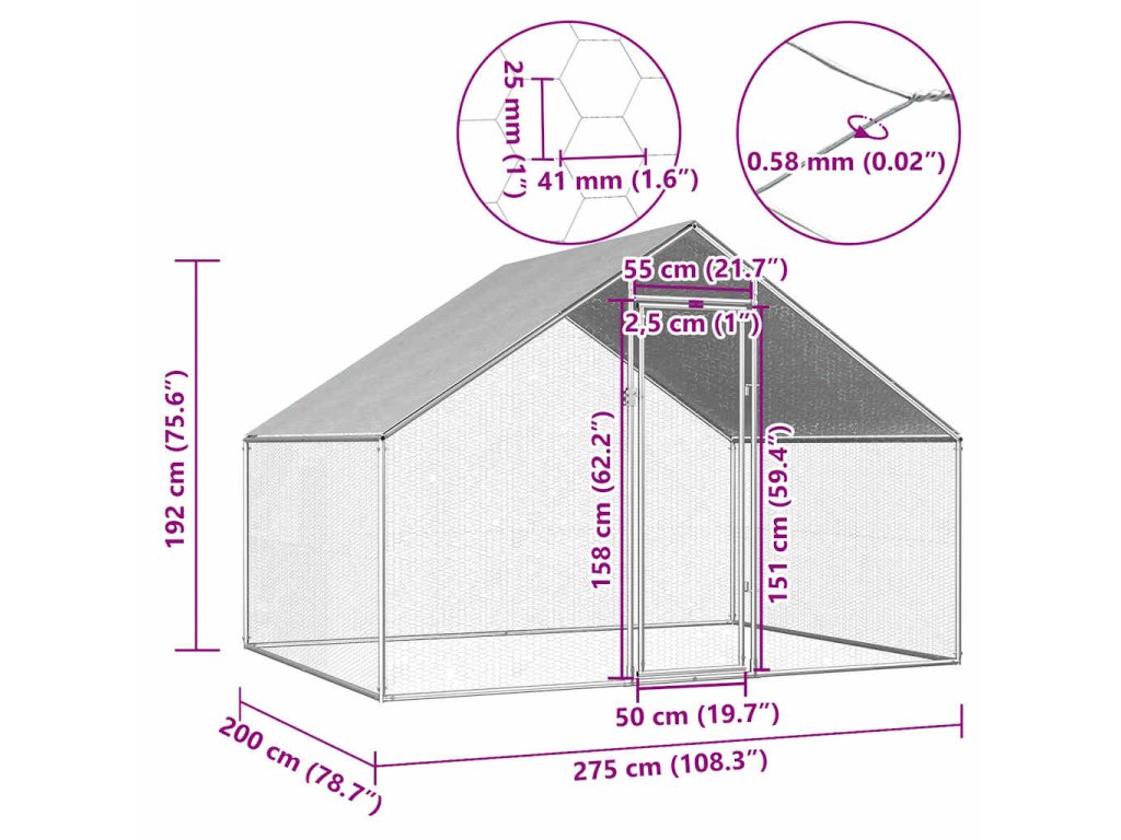 Venkovní klec pro kuřata 2,75 x 2 x 1,92 m pozinkovaná ocel 170788